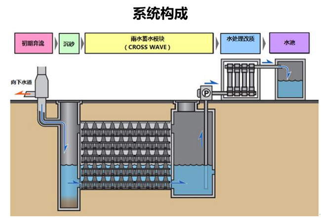 雨水收集主要用于綠化灌溉,在無雨季(水)的情況下,如果人工湖水量低,將抽到人工湖,一個是補充人工湖的水量,如人工湖上有排污池,再進入管道直接流到地下車庫收集池中,這是一個循環。